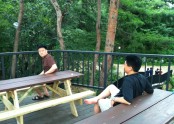 수련회 아침날 두 남자의 뒷모습.