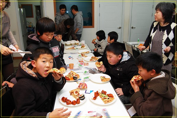 저녁은 교회에서..