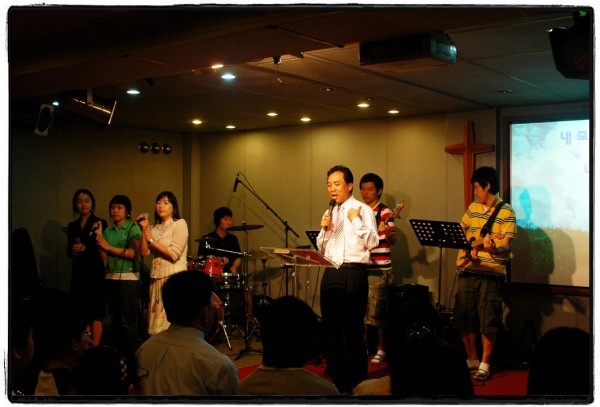 찬양하는 모습과 우리 음악선교팀 오우버 플로우(발음을 살리려고)~