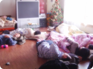 밤새워 신나게 게임을 즐긴 후, 피곤에 지쳐 잠든 모습//