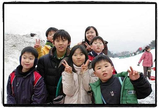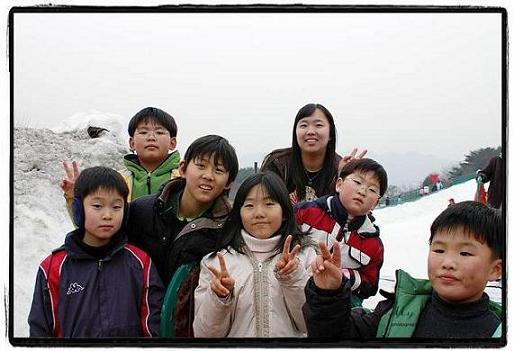 * 눈썰매 타고 내려오는 길에..기념촬영^--^